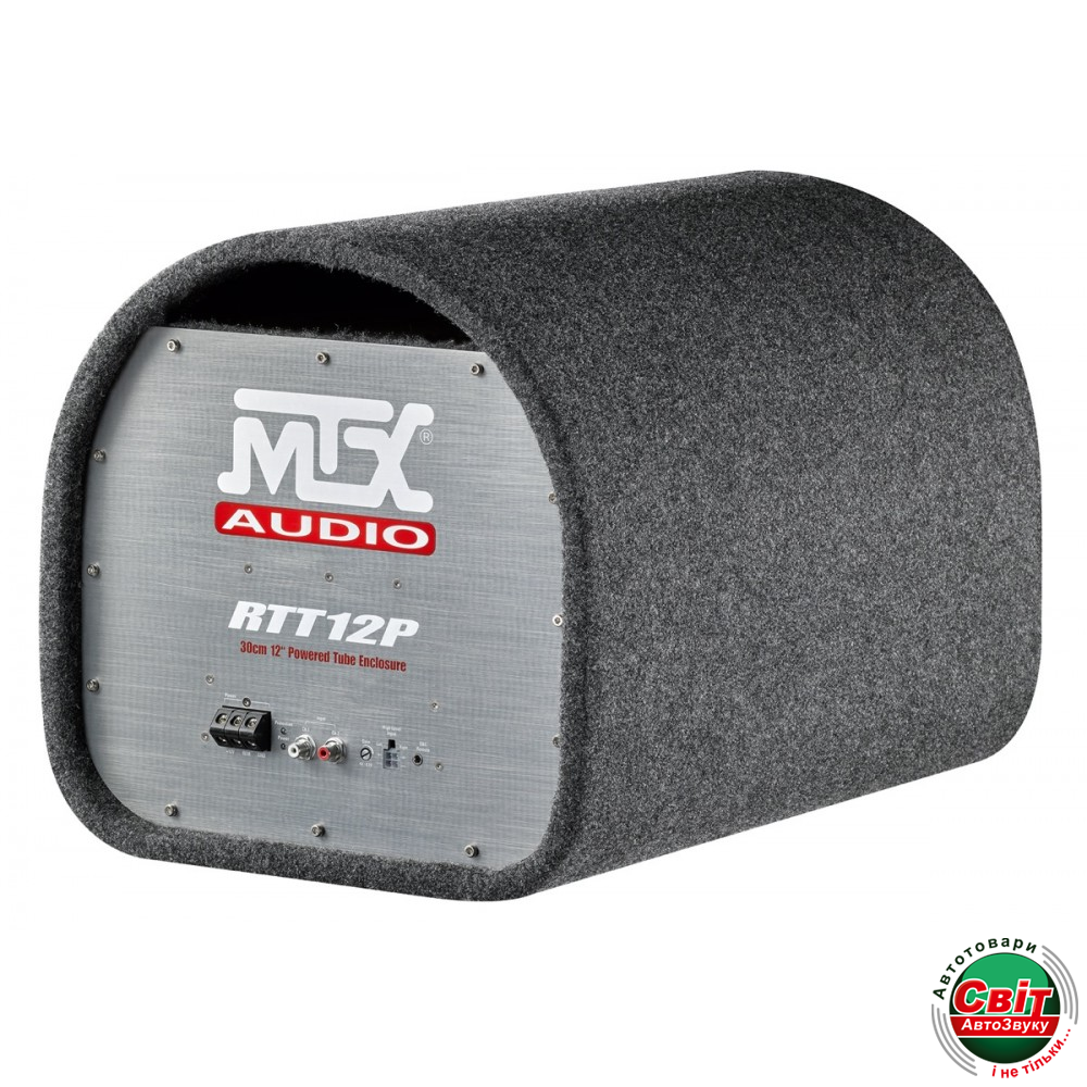 Сабвуфер MTX RTT12PАктивний сабвуфер MTX RTT12P (30см 220Вт RMS 660Вт Пік) оснащений 30см сабвуфером з піковою продуктивністю, підсилювачем класу D 220Вт RMS з винятковою динамікою та трубою за жорсткістю близькою до брухту