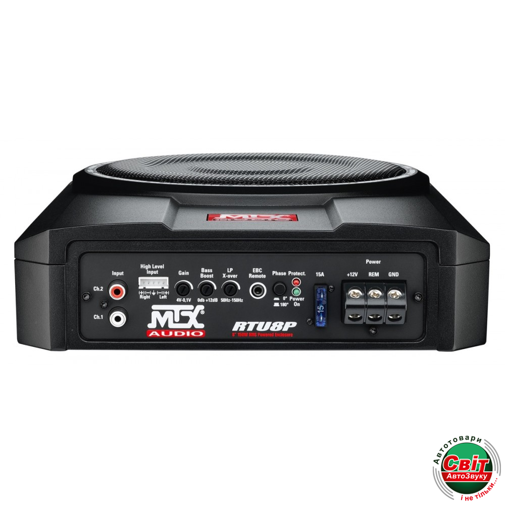 Сабвуфер MTX RTU8PАктивний сабвуфер MTX RTU8P (20 см, 150 Вт RMS, 600 Вт пік) не має собі рівних, коли йдеться про покращення інсталяції. Він дуже компактний, дуже тонкий (менше 8 см завтовшки), дуже легко поміщається (наприклад, під сидінням...) і дуже простий у встановленні. Це маленьке диво якості звуку, здатне відтворювати рівень басів більш ніж достатній для прослуховування музики з нескінченним задоволенням. Ми витратили час на те, щоб створити дивовижний продукт із чудовим балансом між якістю басів, потужністю, ціною та дизайном.