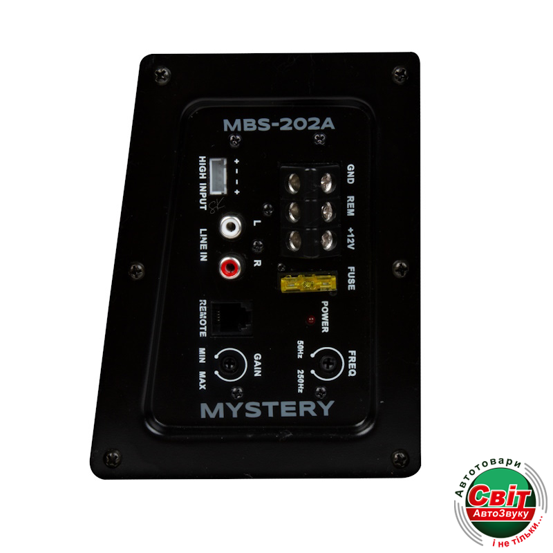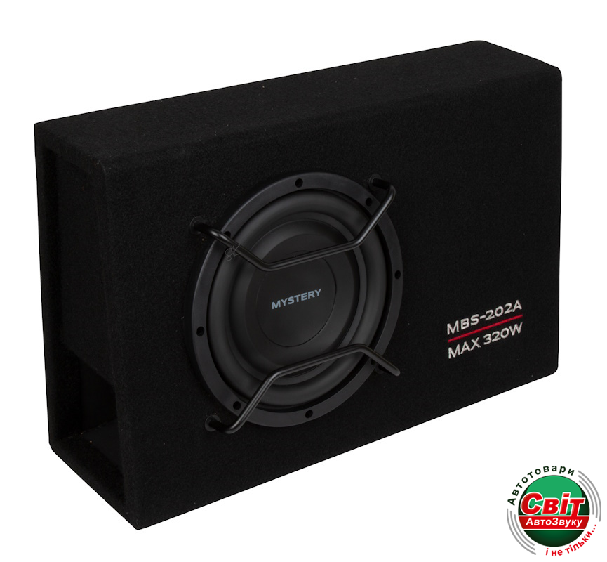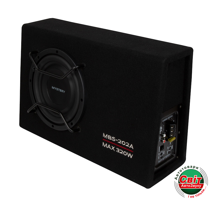 Сабвуфер Mystery MBS-202AАктивний сабвуфер від Mystery, призначений для якісного та повноцінного відтворення низьких частот. Пристрій виконаний у строгому дизайні чорного кольору.