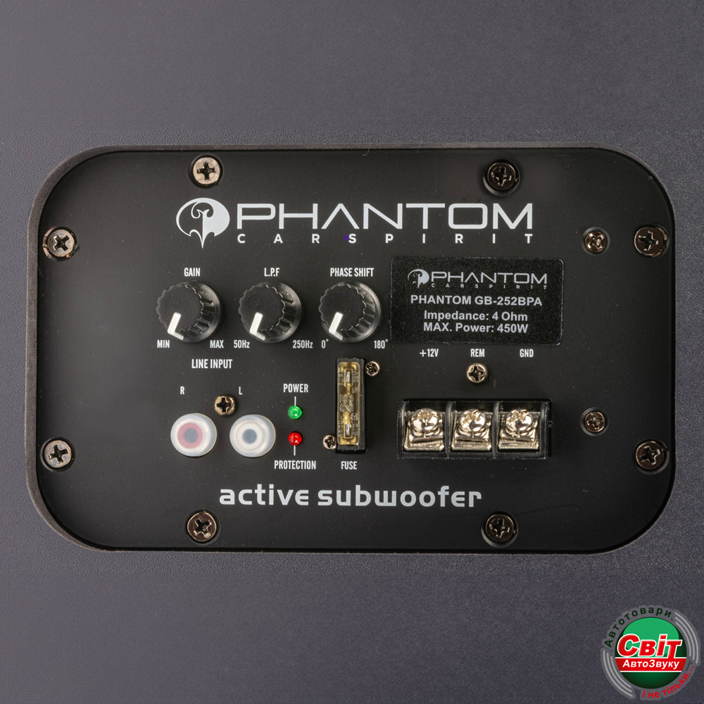 Корпусний активний сабвуфер з фазоінвертором PHANTOM GB-252BPA розроблений для тих хто хоче покращити свою аудіосистему і додати якісного, насиченого баса. Компактні розміри та скошена задня стінка сабвуфера дозволять встановити його під задні сидіння в будь-який автомобіль.