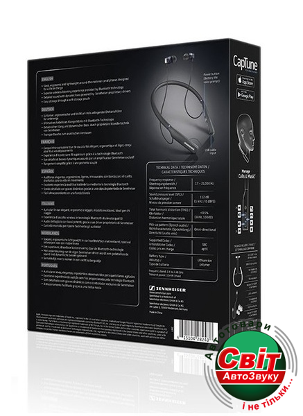 - Внутри нашейного обода CX 7.00BT In-Ear Wireless скрыта миниатюрная аккумуляторная батарея, которая обеспечивает до 10 часов работы устройства в режиме непрерывного аудиовоспроизведения и полностью заряжается всего за 1.5 часа от USB-порта. А в комплекте поставки предусмотрен фирменный чехол Sennheiser, в котором гарнитуру удобно хранить и носить с собой.