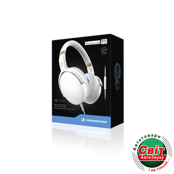 Навушники Sennheiser HD 4.30i WhiteSennheiser HD 4.30 оснащена миниатюрным 3-кнопочным пультом, который встроен непосредственно в кабель, и с помощью которого можно дистанционно управлять функциями аудиовоспроизведения плеера iPhone, iPad, iPod или Android-смартфона или планшета, принимать и делать телефонные звонки. Модель также отличается особой прочностью и может складываться. А в сложенном виде она занимает еще меньше места, потому ее всегда удобно носить с собой.