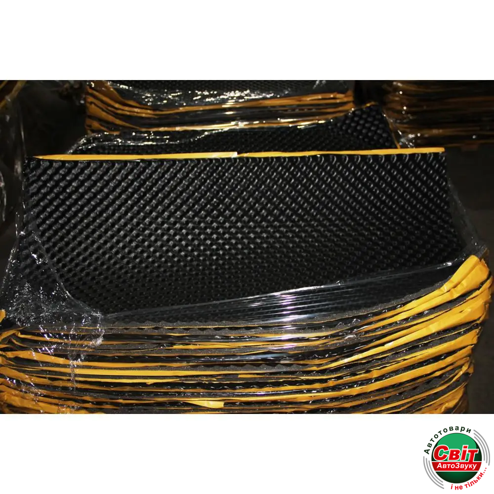 Звуковбирний матеріал на основі поліуретанової піни з пірамідальною гранню товщиною 15 мм. Зверху захищена тонкою поліуретановою плівкою, яка захищає матеріал від вологи та виступає як додаткова мембрана для уловлювання низькочастотних звуків. Має липкий шар для комфортного та швидшого нанесення. Завдяки формі матеріалу у вигляді хвилі рівень звукопоглинання даного матеріалу досягає 80%, що на порядок вище ніж у аналогічних матеріалів. Матеріали подібного типу використовують для обробки стін та стель студій звукозапису для отримання чистого звучання та високої якості запису.