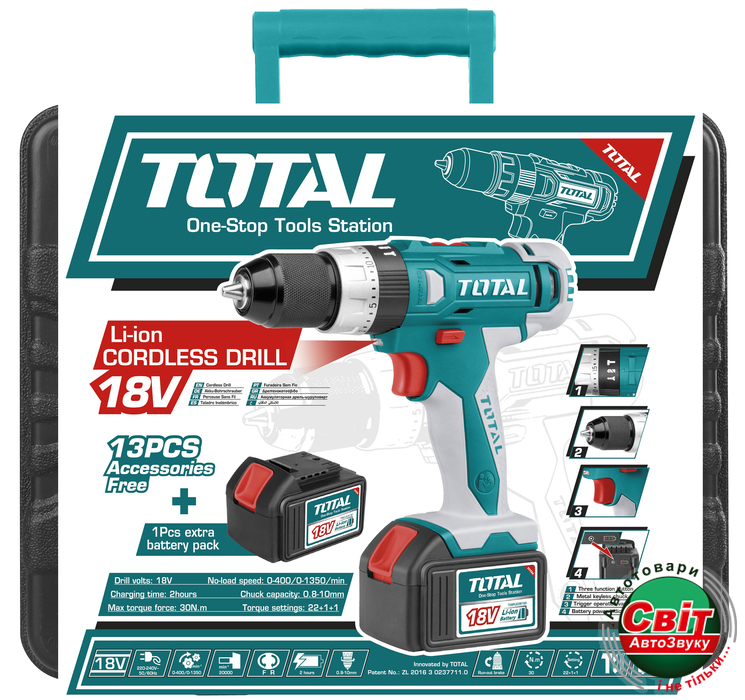 Шуруповерт TOTAL TDLI228180Опис: