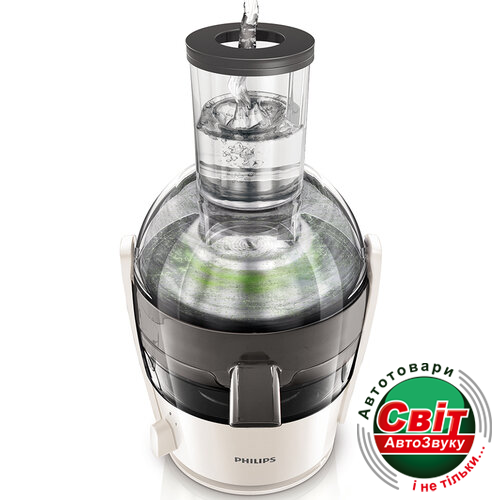 Соковижималка Philips — это первая на рынке модель с центрифугой, которая оснащена функцией предварительной очистки. Налив воду в толкатель, можно промыть прибор изнутри для удаления оставшихся волокон с крышки и более легкой очистки фильтра.