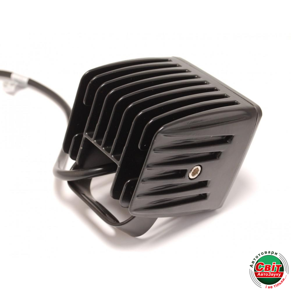 LED фара ближнего світла с стеклом из ударопрочного поликарбоната с высоким уровнем светопропускания. Имеет черный алюминиевый корпус с защитой от влаги IP67 и с ребрами охлаждения. Крепится с помощью стального кронштейна, который позволяет регулировать угол наклона и поворот фары. Фара легко монтируется и регулируется, хорошо «держит» регулировку благодаря грамотной конструкции.