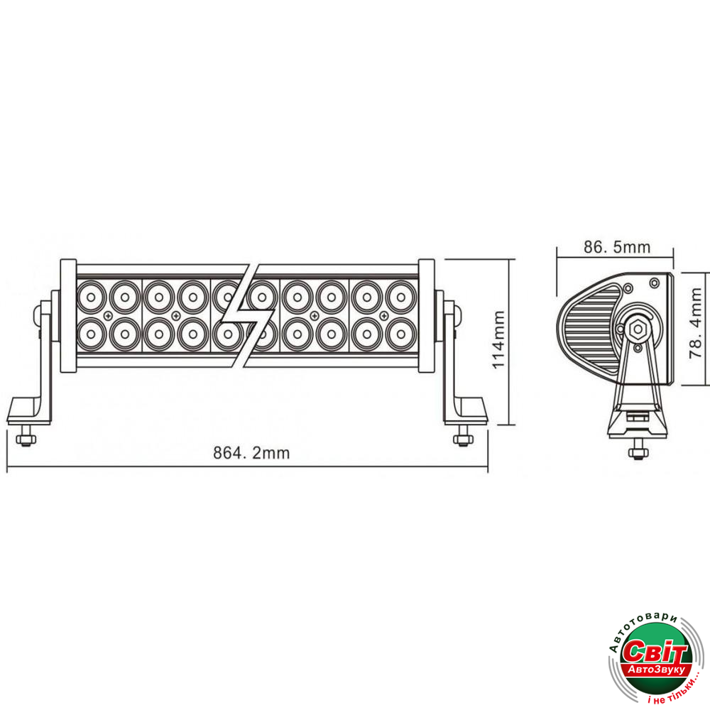 - Размер: 864,2х86,5х78,4 (114 c креплением) мм