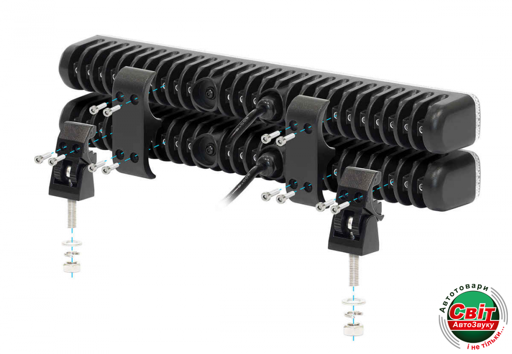 Светодиодные лампы комплектуются виброизолирующими и ударопрочными кранштейнами для установки и проводами для подключения.