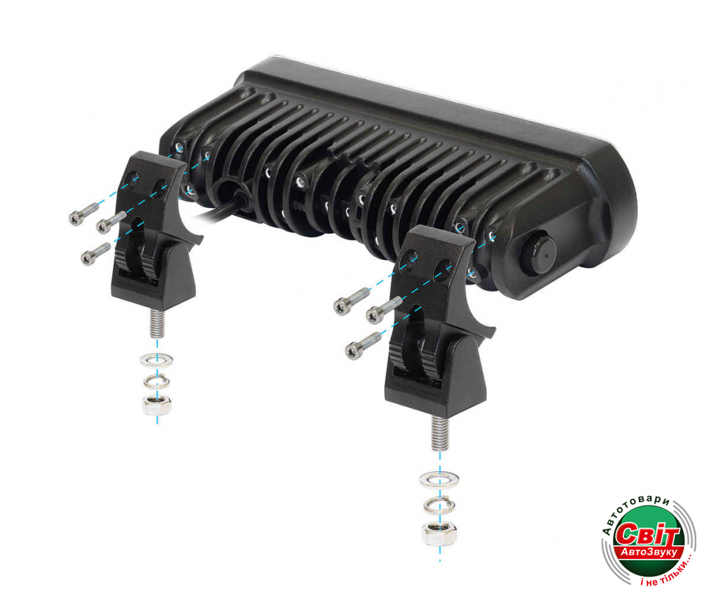 Светодиодные лампы комплектуются виброизолирующими и ударопрочными кранштейнами для установки и проводами для подключения.