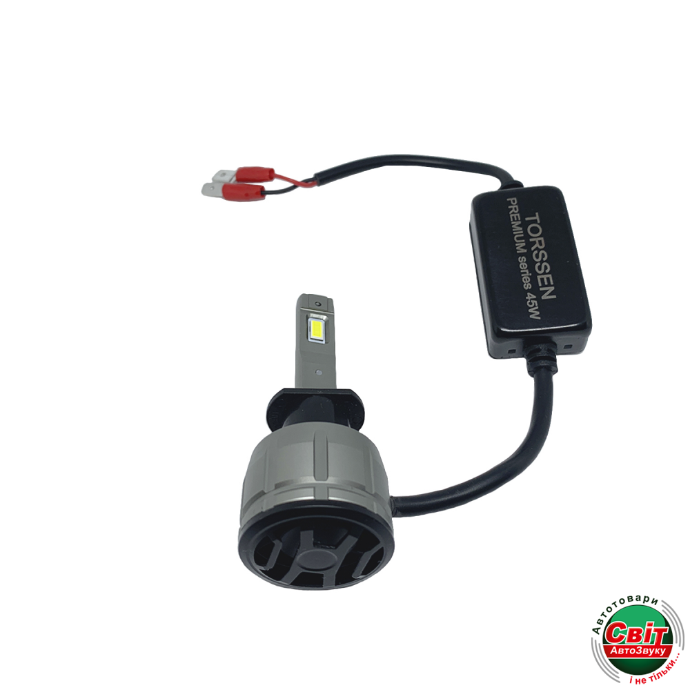 Світлодіодна лампа TORSSEN Premium H1 6000K (пара)Світлодіодні лампи TORSSEN PREMIUM потужністю 45Вт є надпотужними світлодіодними лампами створені на базі чіпа корейської компанії CSP світловим потоком 7000Лм.Світлодіод забезпечує максимальну світловіддачу при стабльной роботі без шкоди для рефлектора фари. Двоконтурна система охолодження має пасивний радіатор і активний вентилятор. Завдяки новітньою інтелектуальною електронною системою стабілізації напруги і температури , лампи TORSSEN PREMIUM стабільно працюють в будь-яких погодних умовах. Лампа имеет миниатюрный размер что упрощает самостоятельную установку лампы в фару автомобиля ,мототехники или грузового автомобиля. Встроенный адаптер CAN BUS позволит установить лампы в автомобили оборудованные бортовой системой контроля сгоревшей лампы(AUDI, VW,Mercedes Benz, Peugeot,Skoda и т.д.).