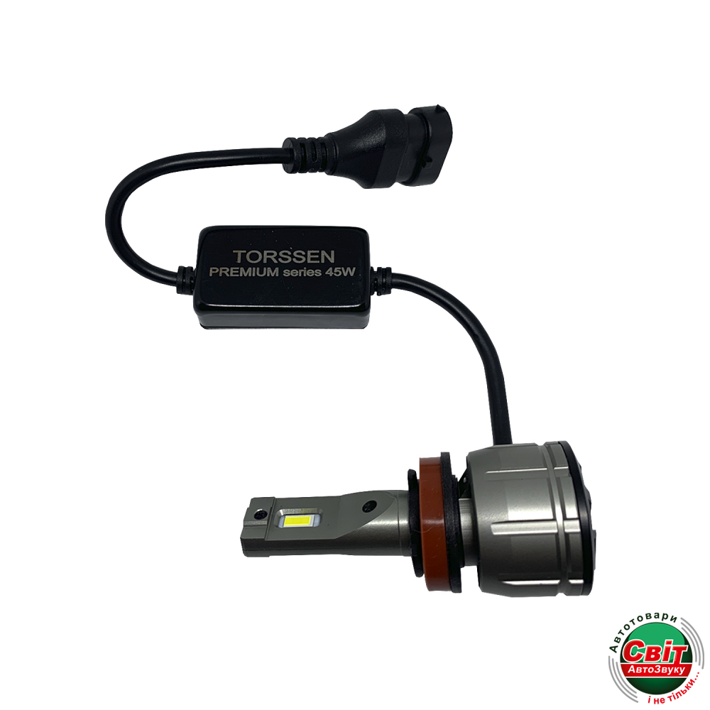 Світлодіодна лампа TORSSEN Premium H11 6000K (пара)Світлодіодні лампи TORSSEN PREMIUM потужністю 45Вт є надпотужними світлодіодними лампами створені на базі чіпа корейської компанії CSP світловим потоком 7000Лм.Світлодіод забезпечує максимальну світловіддачу при стабльной роботі без шкоди для рефлектора фари. Двоконтурна система охолодження має пасивний радіатор і активний вентилятор. Завдяки новітньою інтелектуальною електронною системою стабілізації напруги і температури , лампи TORSSEN PREMIUM стабільно працюють в будь-яких погодних умовах. Лампа має мініатюрний розмір що спрощує самостійну установку лампи в фару автомобіля ,мототехніки або вантажного автомобіля. Вбудований CAN BUS адаптер дозволить встановити лампи в автомобілі обладнані бортовою системою контролю згорілої лампи(AUDI, VW,Mercedes Benz, Peugeot,Skoda і т. д.).