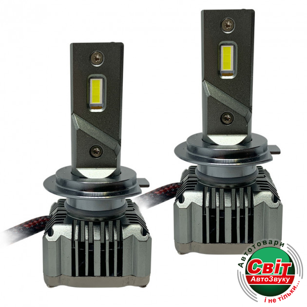- Підвищена яскравість діодів (максимальний світловий потік досягає 6000 Лм на кожну лампу в ближньому світлі+6000Лм на дальнє світло на кожну лампу); Комплект з 2 ламп забезпечує світловий потік 12000Лм