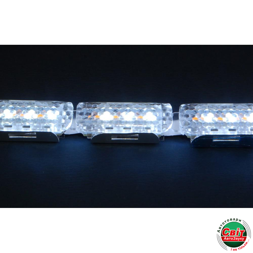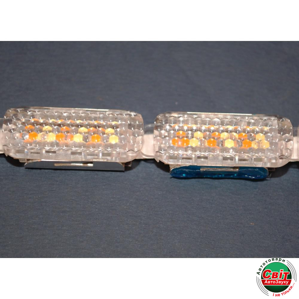 Світлодіодна (LED) стрічка Baxster Running Crystall Жовтий-Білий 16 сегментів v4 (2шт)Гнучкі денні ходові вогні з функцією поворотів. Складається з 16 модулів зі світлодіодами, сполучених гнучким дротом. Світяться яскравим білим світлом, при включенні поворотів світяться жовтим (біжить смуга). Підключаються як ДХО