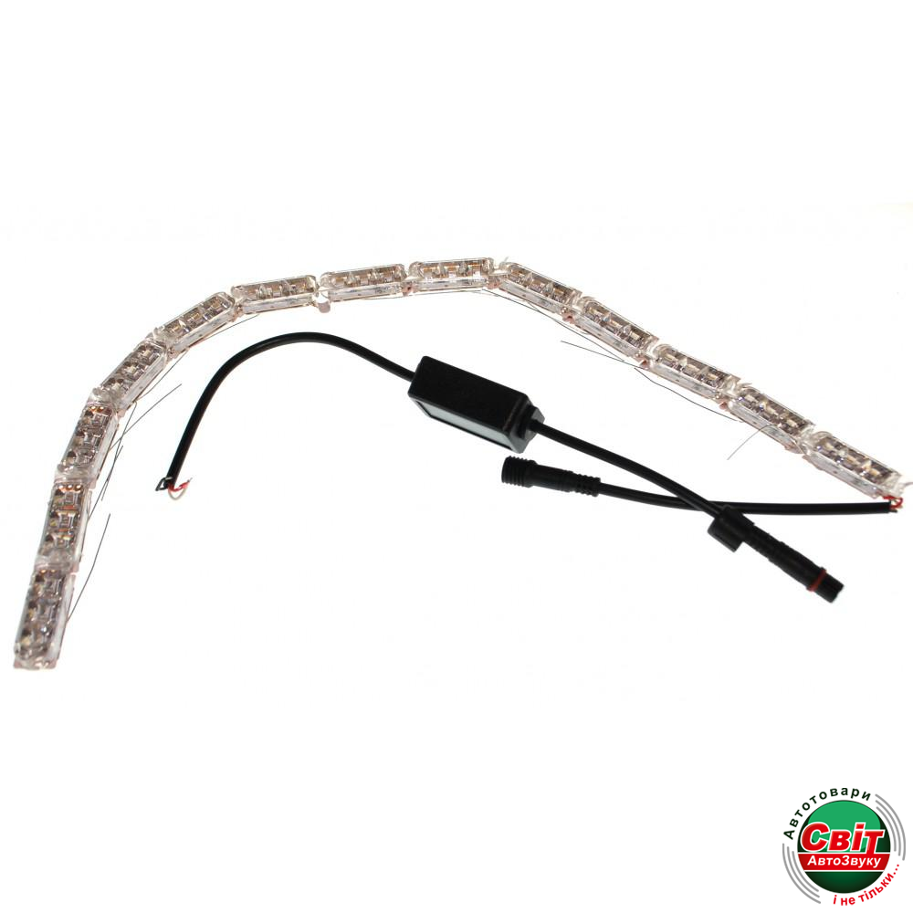 Світлодіодна (LED) стрічка Baxster Running Crystall Жовтий-Білий v2 (2шт)Гнучкі денні ходові вогні з функцією поворотів. Складається з 13 модулів з світлодіодами, сполучених гнучким дротом. Світяться яскравим білим світлом, при включенні поворотів світяться жовтим (біжить смуга). Підключаються як ДХО
