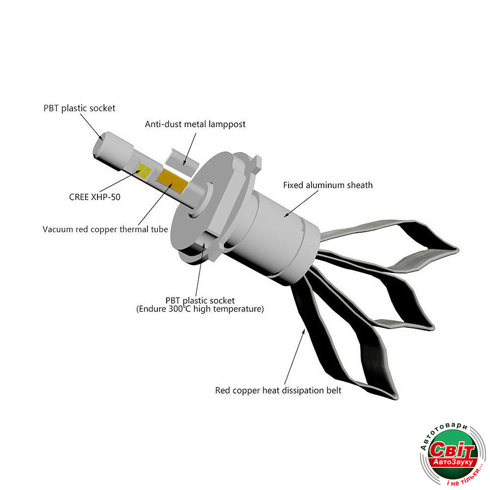 - Чип (Диод) - 4 шт CREE XHP-50 (специально разработан для автомобильного освещения)