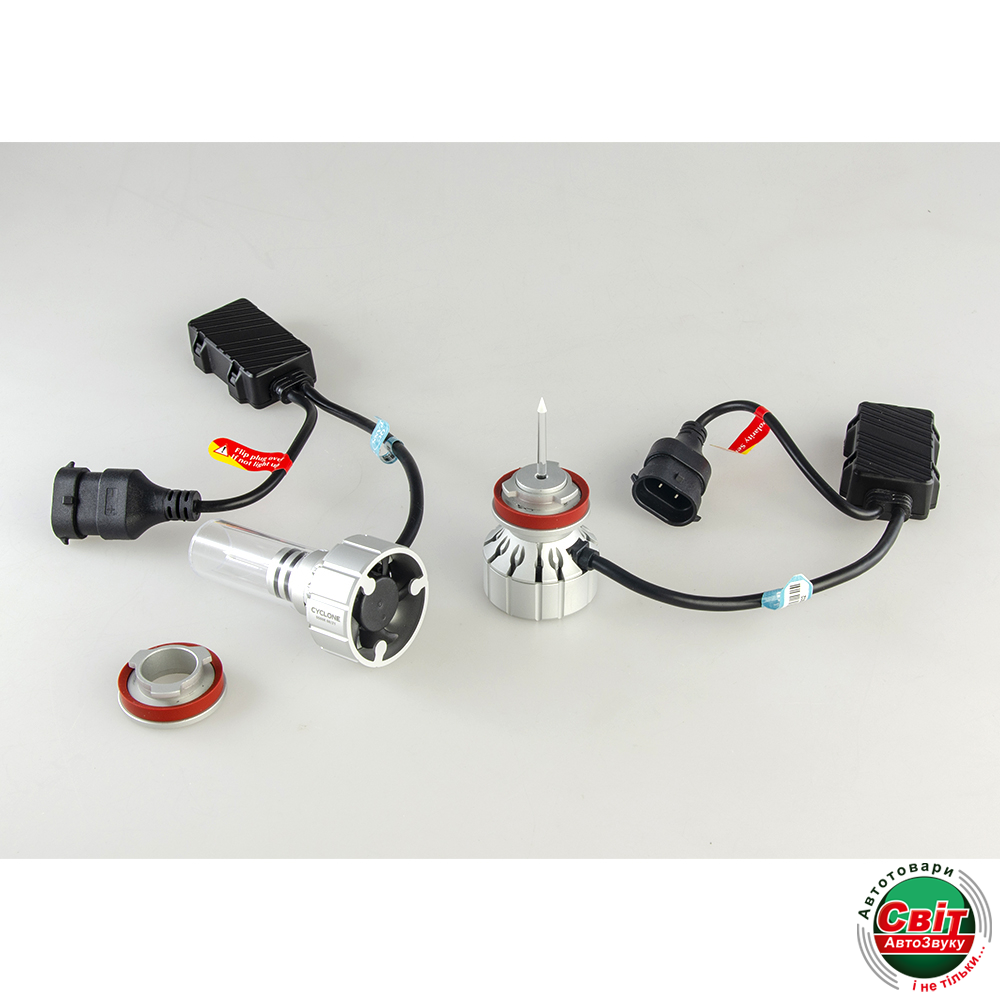 Світлодіодні лампи головного світла CYCLONE TYPE 35, спеціально розроблені для використання в лінзованною оптиці. Висока світлова потужність. Активне охолодження. Споживана потужність: 45W. Кут світіння 360 градусів, що дає рівномірне світло без затемнень, що притаманне світлодіодним лампам з розташуванням чіпів по різних сторонах від радіатора.