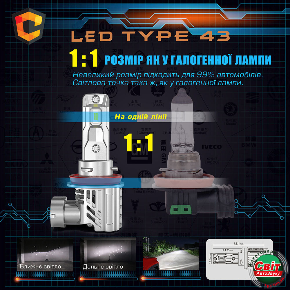 - ›Світлодіодні лампи Cyclone LED H11 5500K type 43 (пара)