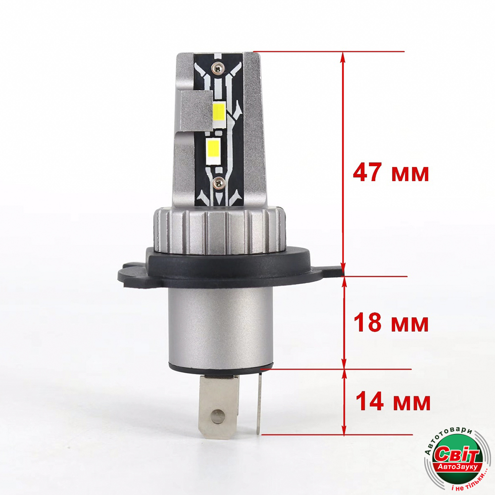 Радіатор з авіаційного алюмінію з великою площею ідеально відводить тепло від лампи, що дозволяє використовувати світлодіоди на повну потужність. При цьому ні сама лампа, ні штатна оптика автомобіля не перегріваються.