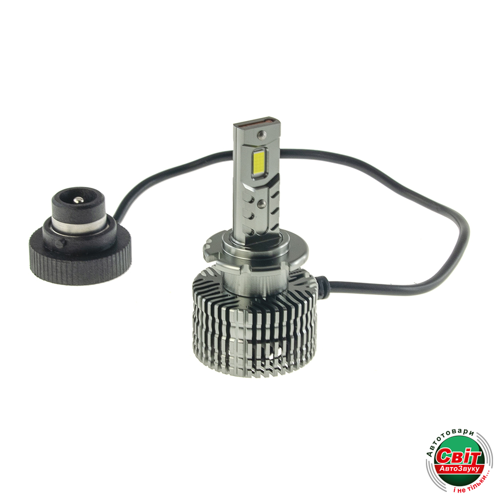 Радіатор з авіаційного алюмінію з великою площею і вбудований кулер ідеально відводить тепло від лампи, що дозволяє використовувати світлодіоди на повну потужність. При цьому ні сама лампа, ні штатна оптика автомобіля не перегріваються.