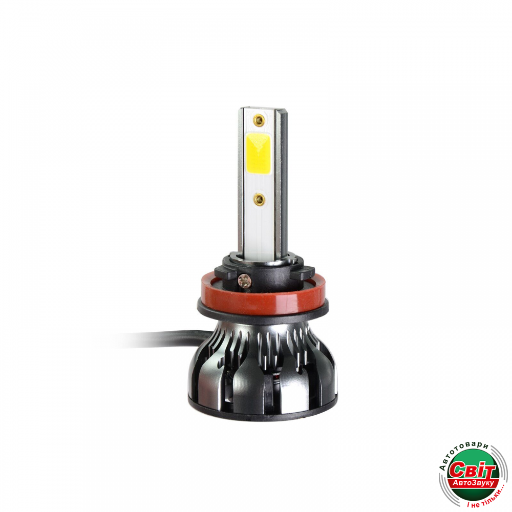 Корпус изготовлен из легкого алюминиевого сплава с медной подложкой и термопастой, что дает хорошую теплопроводность. Система охлаждения активная, представленная стандартным радиатором ребристой формой и встроенным кулером, это идеальное решение для более быстрого отвода тепла от диодов, что позволит использовать их на полную мощность. Класс защиты по стандарту IP67, что позволяет использовать лампочку в агрессивных условиях окружающей среды. Тип цоколя H11 (H8/H9), предназначен для дальнего света, ближнего и противотуманного света.