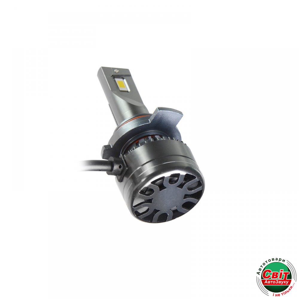 Корпус изготовлен из легкого алюминиевого сплава с медной подложкой и термопастой, что позволяет лучше отводить тепло от светодиодных элементов. Система охлаждения активная, представленная стандартным радиатором ребристой формой и встроенным кулером, это идеальное решение для более быстрой теплоотдачи, что позволит использовать лампы на полную мощность. Класс защиты по стандарту IP67, что позволяет использовать лампочку в агрессивных условиях окружающей среды. Тип цоколя HIR2 (9012), предназначен для ближнего света.