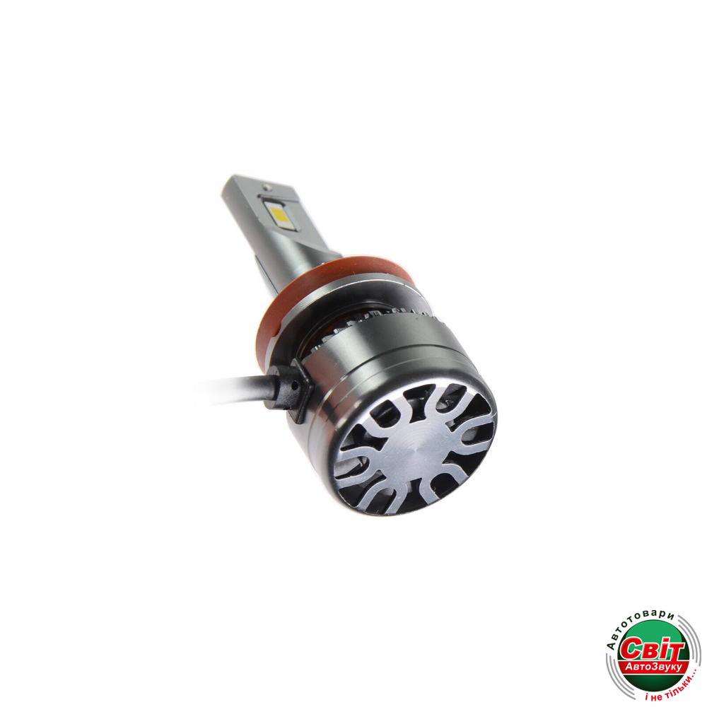 Корпус изготовлен из легкого алюминиевого сплава с медной подложкой и термопастой, что позволяет лучше отводить тепло от светодиодных элементов. Система охлаждения активная, представленная стандартным радиатором ребристой формой и встроенным кулером, это идеальное решение для более быстрой теплоотдачи, что позволит использовать лампы на полную мощность. Класс защиты по стандарту IP67, что позволяет использовать лампочку в агрессивных условиях окружающей среды. Тип цоколя H11 (H8/H9), предназначен для дальнего света, ближнего и противотуманного света.