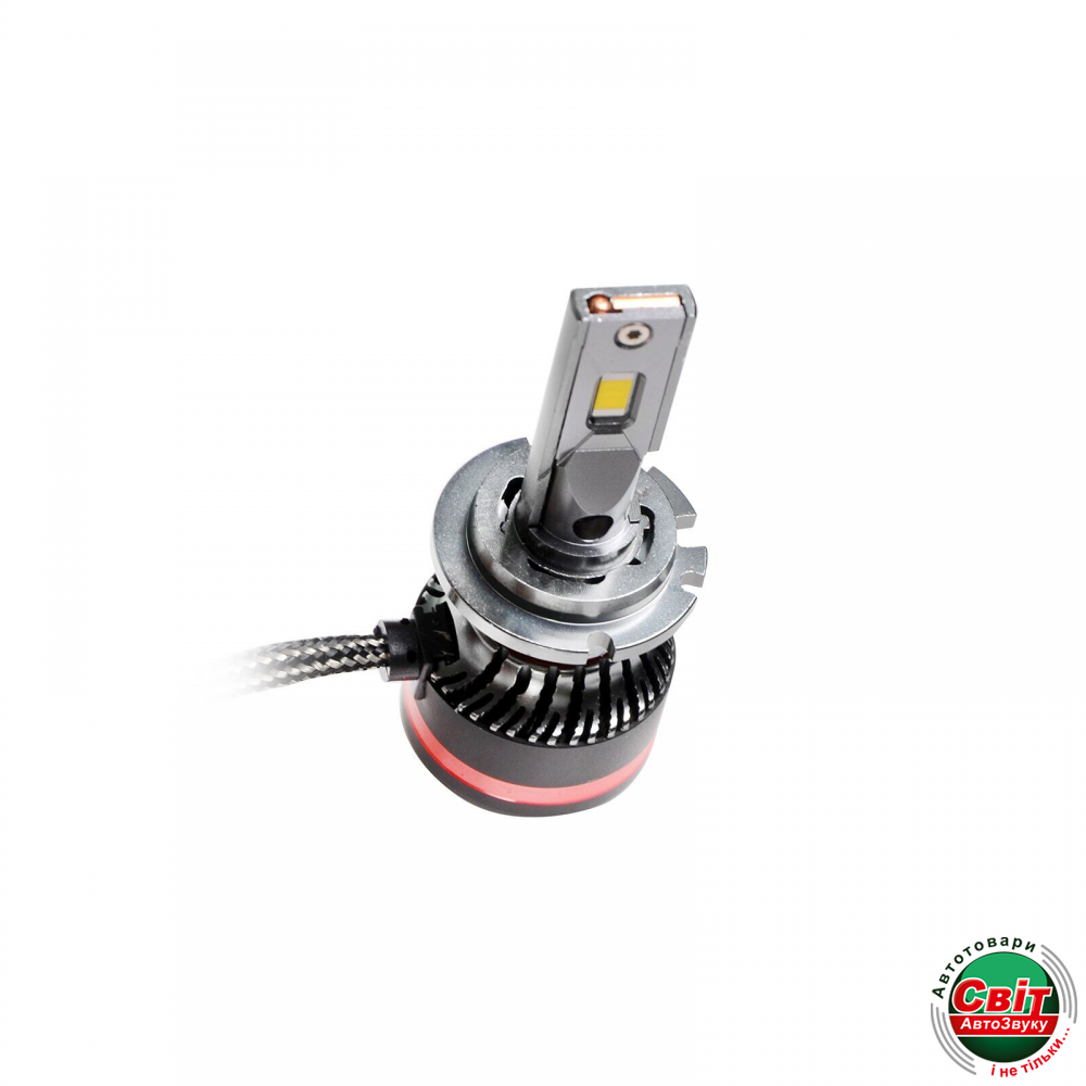 Корпус изготовлен из легкого алюминиевого сплава с медной подложкой и термопастой, что позволяет лучше отводить тепло от светодиодных элементов. Система охлаждения активная, представленная стандартным радиатором ребристой формой и встроенным кулером, это идеальное решение для более быстрой теплоотдачи, что позволит использовать лампы на полную мощность. Класс защиты по стандарту IP67, что позволяет использовать лампочку в агрессивных условиях окружающей среды. Тип цоколя D2S (D4S), предназначен для дальнего и ближнего света.