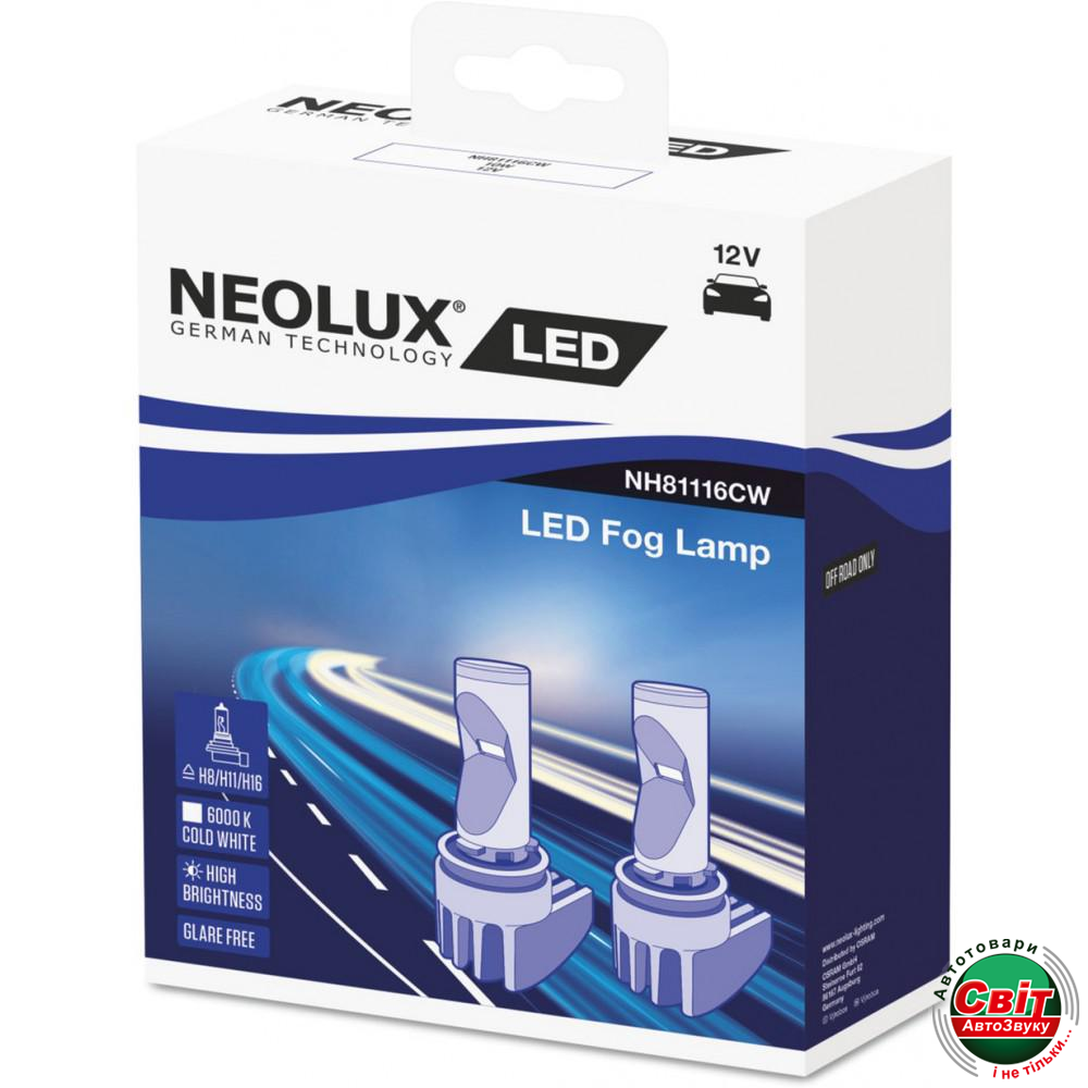 Світлодіодні лампи Neolux H8/H11/H16 PGJ19-1 10W 12V00K (NH81116CW) (пара)Для власників автомобілів, у яких є система контролю роботи ламп, цей комплект LED ламп слід купувати разом з обманом, оскільки може статися, що борт комп'ютера, який впливає на роботу ламп.