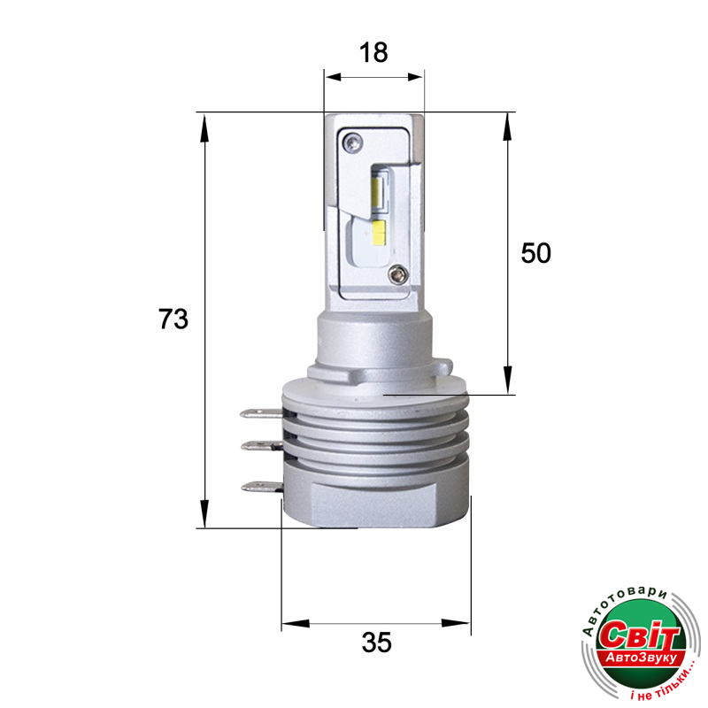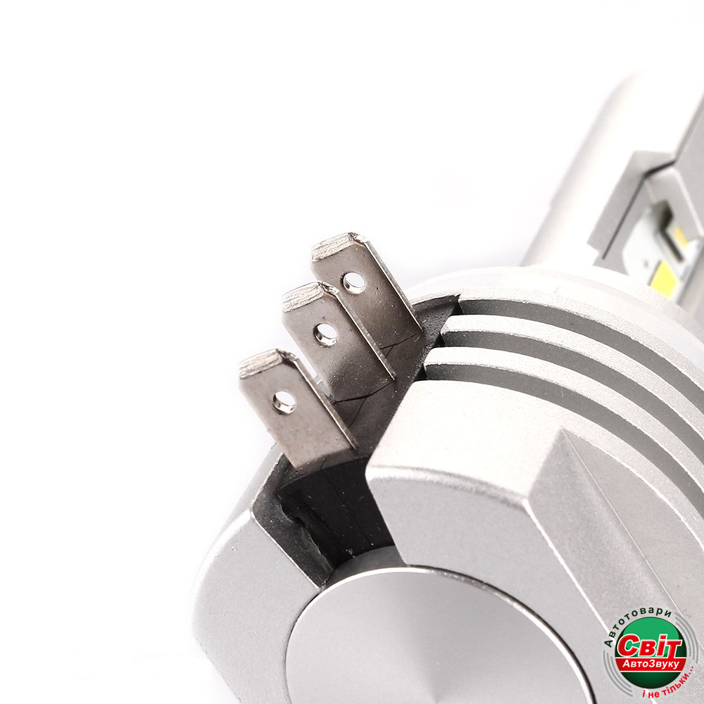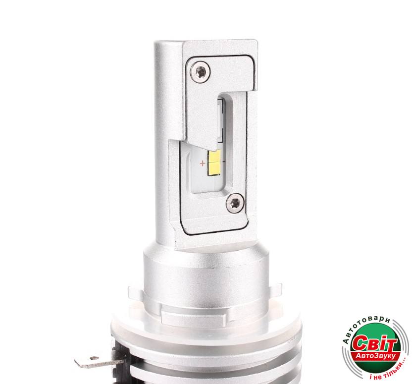 Тип цоколя H15 (PGJ23t-1), предназначен для установки в главную оптику, а именно для дальнего света. Источником света являются светодиоды CSP, они обладают хорошими техническими характеристиками. В данной модели десять чипов, по пять с двух сторон. Они расположены на том месте где в галогеновых лампах находится нить накаливания, поэтому дают хорошую светотеневую границу. Потребляемая мощность в 20 Вт, а сила светового потока составляет 4000 Лм. Цветовая температура 6500 К, это означает, что лампы дают яркий белый свет, но с холодным голубым оттенком. Для стабілізації напруги і управління лампою вбудований драйвер.