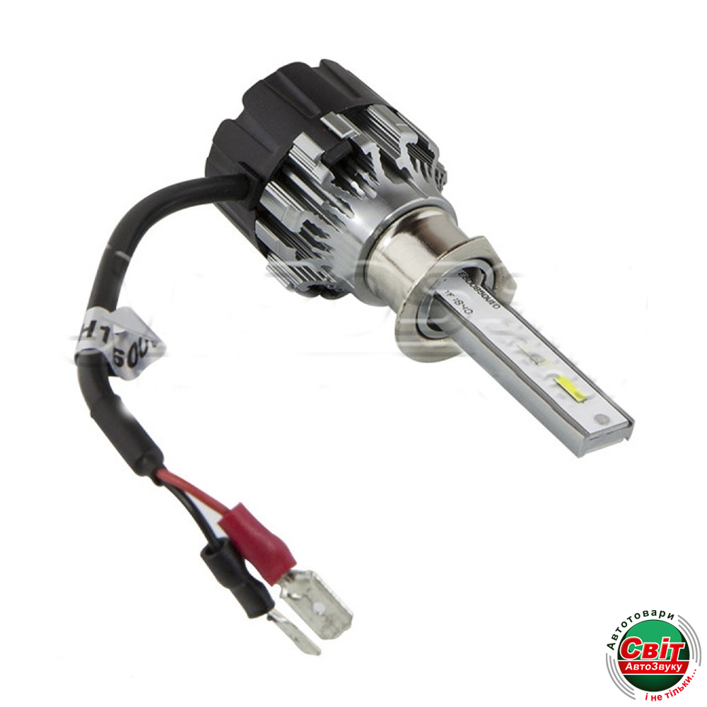 Источник света шесть мощных светодиодных элементов типа Tianxin CSP Chips. Они расположены на том месте где в галогенных лампах находится нить накаливания, поэтому дают хорошую светотеневую границу. Излучают свет с цветовой температурой 6000 К, это яркий белый свет с холодным голубым оттенком. При потребляемой мощности в 30 Вт, сила светового потока 5000 Лм. Рабочее напряжение от 10 до 32 В. Для стабилизации напряжения и управления лампой в комплект входит внешний драйвер, который предохраняет от скачков в электрической системе автомобиля.