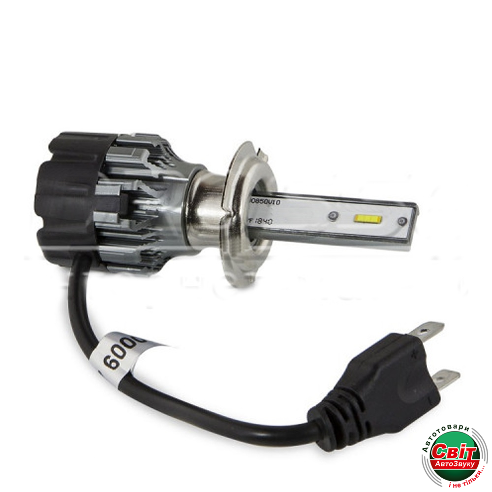 Источник света шесть мощных светодиодных элементов типа Tianxin CSP Chips. Они расположены на том месте где в галогенных лампах находится нить накаливания, поэтому дают хорошую светотеневую границу. Излучают свет с цветовой температурой 6000 К, это яркий белый свет с холодным голубым оттенком. При потребляемой мощности в 30 Вт, сила светового потока 5000 Лм. Рабочее напряжение от 10 до 32 В. Для стабилизации напряжения и управления лампой в комплект входит внешний драйвер, который предохраняет от скачков в электрической системе автомобиля.