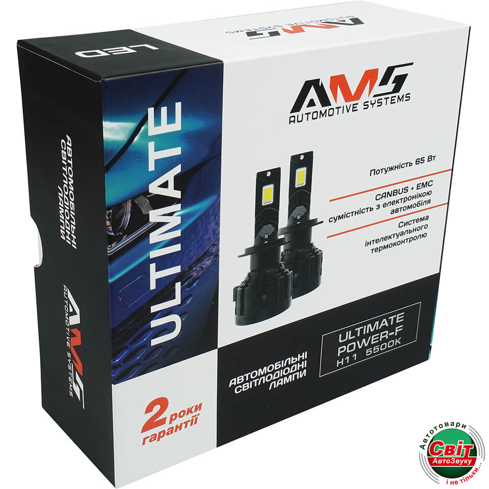 Світлодіодні лампи AMS Ultimate Power-F H11 5500K CanBus (пара)Світлодіодні LED лампи AMS – потужні та надійні, призначені для використання в оптиці головного світла. Вони мають високу потужність і гарантують втричі більше світла, порівняно з галогеновими джерелами. Автолюбителі також вибирають їх за довговічність та простоту установки.