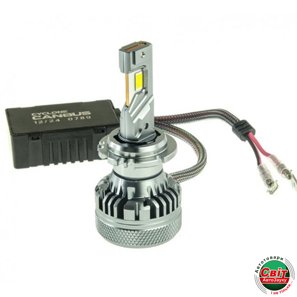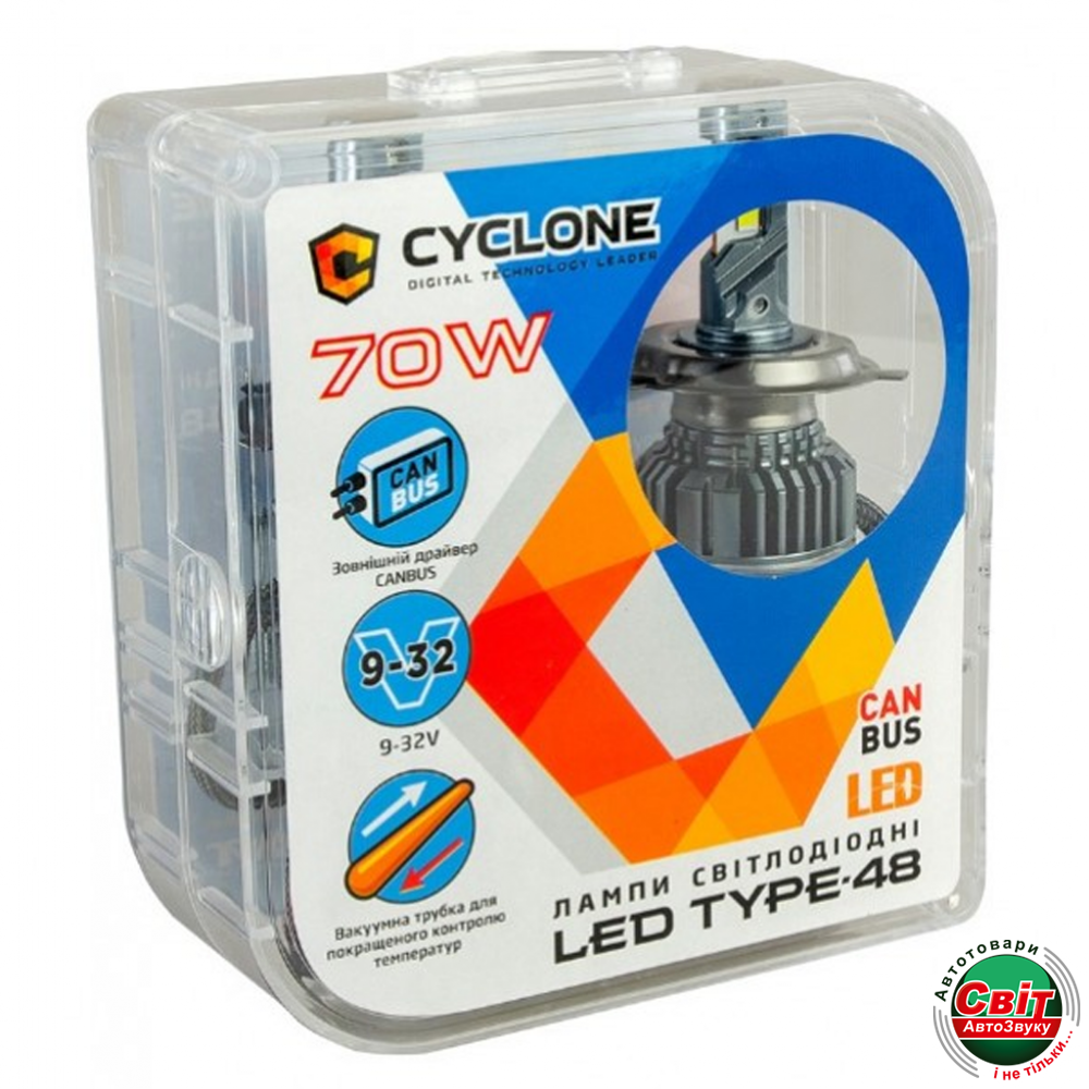 Світлодіодні лампи Cyclone LED D2 5500K type 48 (пара)Інтелектуальна система охолодження з використанням мідної теплової трубки збільшеного діаметра, застосування високошвидкісного вентилятора, дозволили досягти максимальної світловіддачі чіпів 3570. Зовнішній драйвер застосований у цих лампах виконаний на новітній елементній базі із застосуванням тільки якісних елементів. Кожна лампа проходить повний цикл перевірок, що дозволяє впевнено гарантувати стабільну роботу протягом усього терміну служби.
