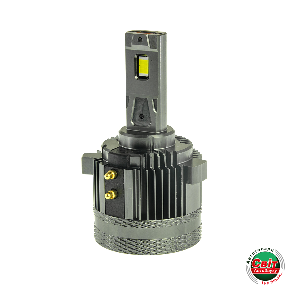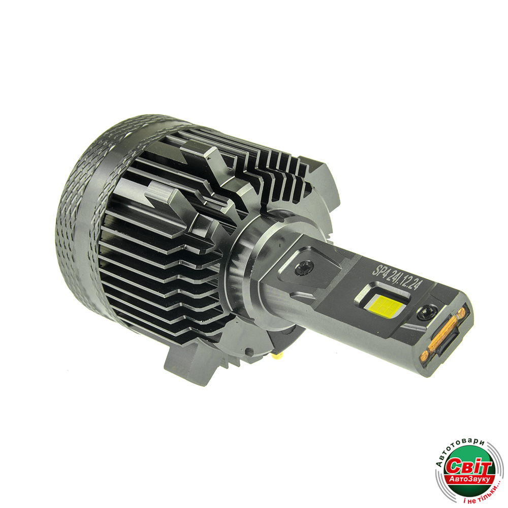 Радіатор з авіаційного алюмінію та вбудованний кулер з великою площею ідеально відводять тепло від лампи, що дозволяє використовувати світлодіоди на повну потужність. При цьому ні сама лампа, ні штатна оптика автомобіля не перегріваються.