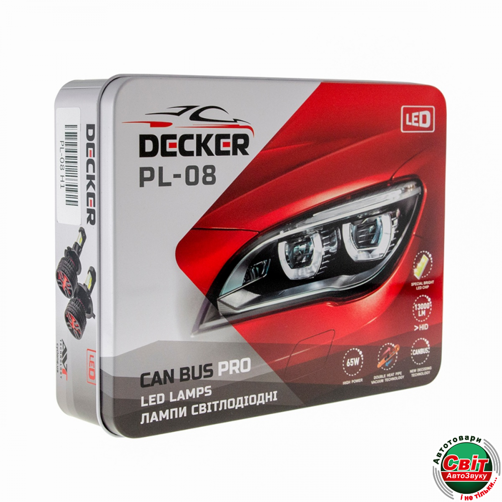 Світлодіодна лампа головного світла DECKER PL-08 - це новітні технології для вашого легкового або вантажного авто Активна інтелектуальна система охолодження, система контролю температури чіпа та застосування високошвидкісного вентилятора дозволили досягти максимальної світловіддачі чіпів CREE light source technology. Зовнішній драйвер CAN BUS PRO застосований у цих лампах виконаний на новітній елементній базі та оснащений модулем обходу помилки бортового комп'ютера. Кожна лампа проходить повний цикл перевірок, що дозволяє впевнено гарантувати стабільну роботу протягом усього терміну служби. Розташування LED елементів відповідає розташуванням ниток розжарення оригінальних галогенних ламп. Встановлення лампи дуже просте і не вимагає кваліфікації установника. Цим самим Ви зможете встановити лампи самі та заощадите на встановленні. Світлодіоди лампи готові до роботи відразу після заміни штатних ламп автомобіля.Характеристики
