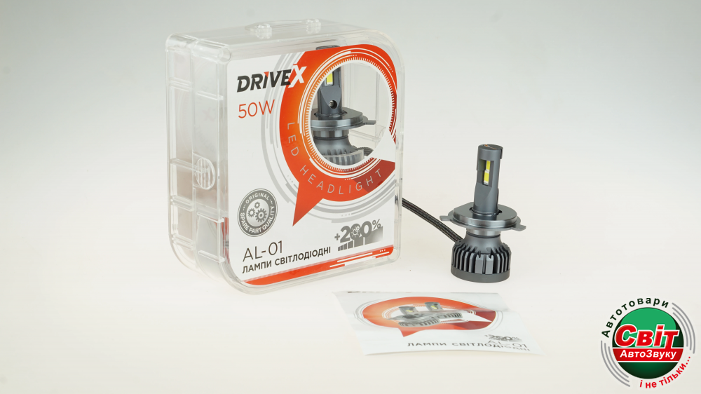 - ›Світлодіодні лампи DriveX AL-01FE H4 6000K 50W LED (пара)