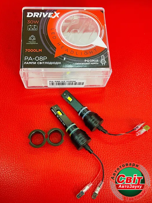 Світлодіодні лампи DriveX PA-08 H4 30W 9-32V 5.5K LED (пара)LED-лампи DriveX серії Small Passive — один із найкращих представників LED ламп за співвідношенням ціна-якість. З цими лампами користувач отримує максимум світла щодо до вартості лампи.