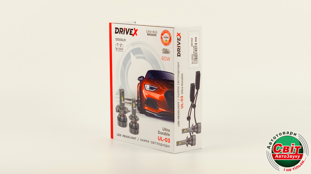 - ›Світлодіодні лампи DriveX UL-03 H4 H/L 60W 9-32V 5.5K LED (пара)