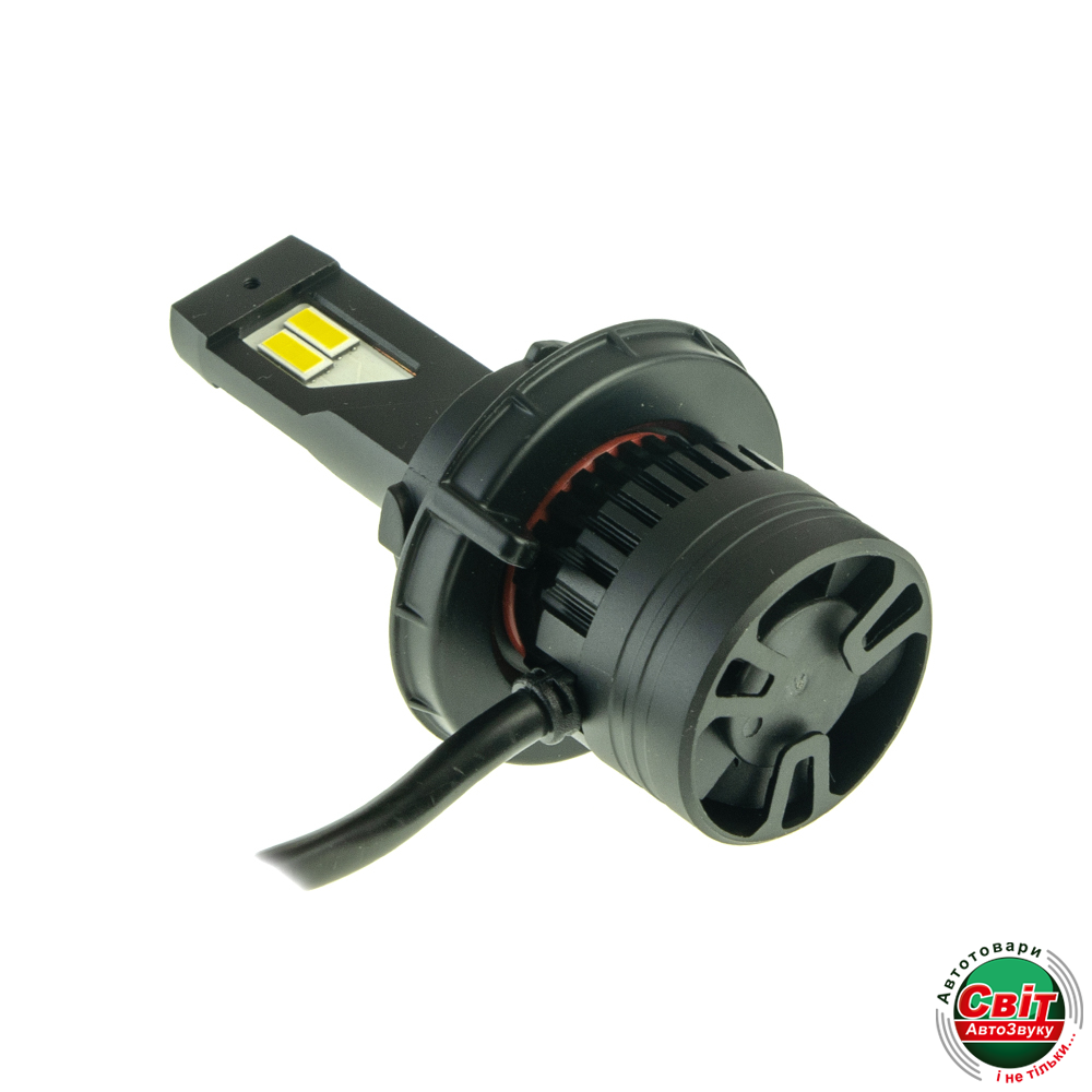 Радіатор з авіаційного алюмінію з великою площею і вбудований кулер ідеально відводить тепло від лампи, що дозволяє використовувати світлодіоди на повну потужність. При цьому ні сама лампа, ні штатна оптика автомобіля не перегріваються.