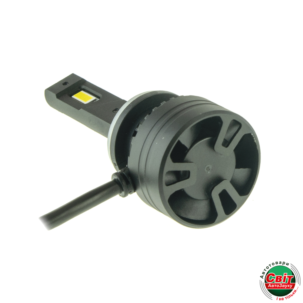 Радіатор з авіаційного алюмінію з великою площею і вбудований кулер ідеально відводить тепло від лампи, що дозволяє використовувати світлодіоди на повну потужність. При цьому ні сама лампа, ні штатна оптика автомобіля не перегріваються.