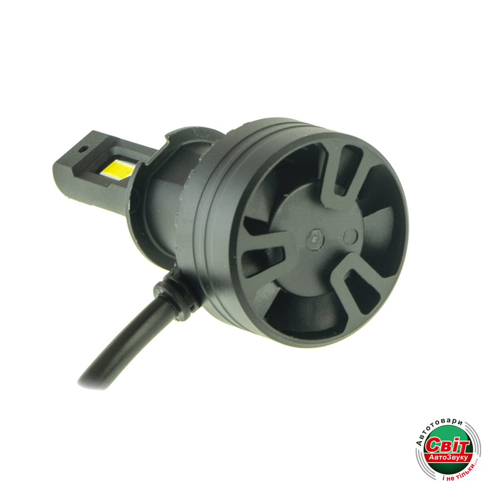 Радіатор з авіаційного алюмінію з великою площею і вбудований кулер ідеально відводить тепло від лампи, що дозволяє використовувати світлодіоди на повну потужність. При цьому ні сама лампа, ні штатна оптика автомобіля не перегріваються.