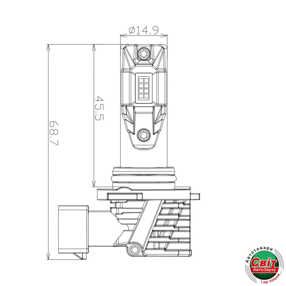 Радіатор з авіаційного алюмінію з великою площею ідеально відводить тепло від лампи, що дозволяє використовувати світлодіоди на повну потужність. При цьому ні сама лампа, ні штатна оптика автомобіля не перегріваються.