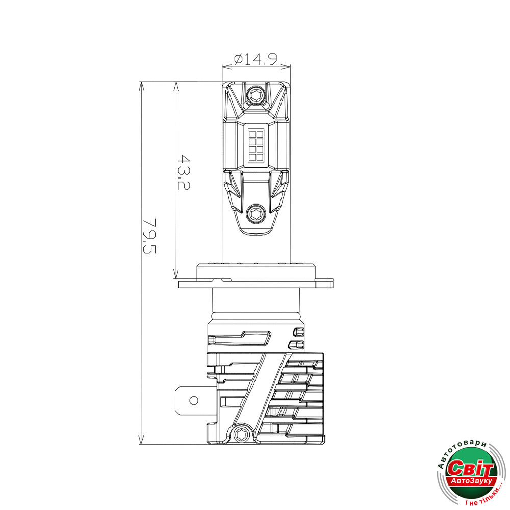 Радіатор з авіаційного алюмінію з великою площею ідеально відводить тепло від лампи, що дозволяє використовувати світлодіоди на повну потужність. При цьому ні сама лампа, ні штатна оптика автомобіля не перегріваються.