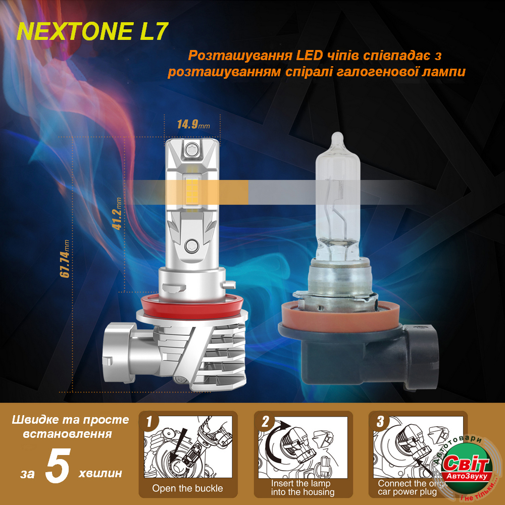 Світлодіодні лампи Nextone LED L7 H7 6000K (пара)Завдяки більшій світловіддачі і меншим енергоспоживанням світлодіодна лампа є відмінною заміною галогенною. Новітні технології по виробництву світлодіодів дозволили розробникам отримати потужний світловий потік, який не поступається ксеноновому.