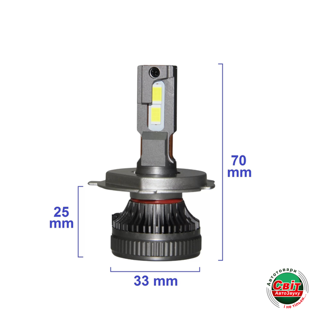 Завдяки компактному розміру кулера, який складає всього 33 міліметри в діаметрі та близько 30 міліметрів у довжину, дана лампа без проблем стане в будь-яку фару без доопрацювань та замін захисних кришок фари.