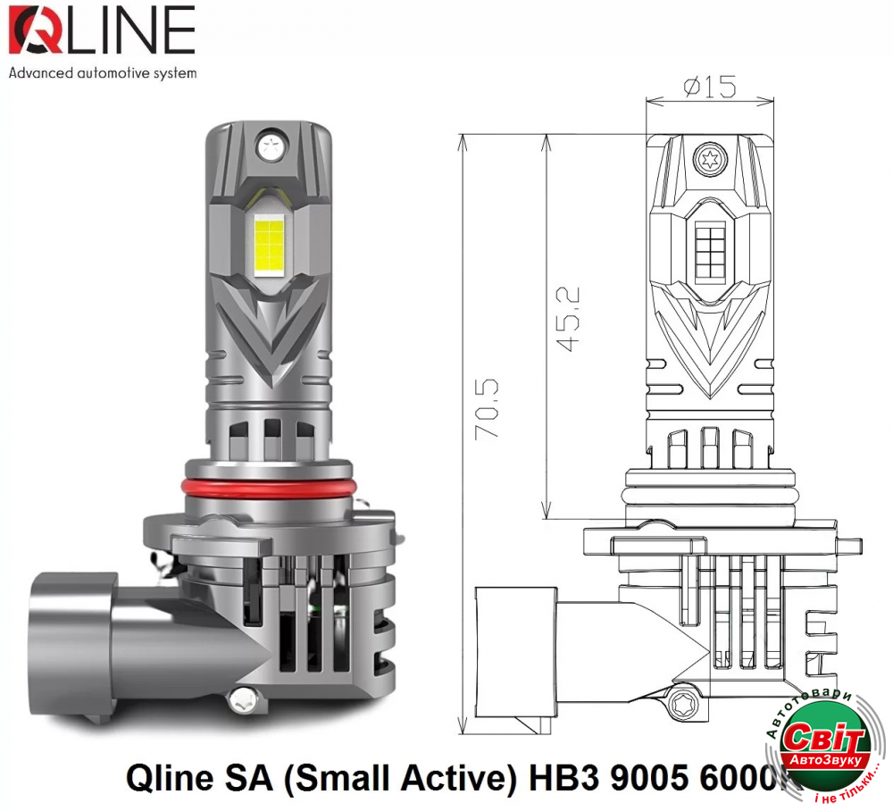 Світлодіодні лампи QLine SA (Small Active) HB3 9005 6000K (пара)Розмір максимально наближений до стандартних галогенових ламп! QLine SA це світлодіодні лампи в маленькому корпусі, але з величезними можливостями! Головна особливість даної лампи – це її розмір. По фізичним параметрам вона не відрізняється від звичайної галогенової лампи і без проблем встановлюється в будь-яку фару.
