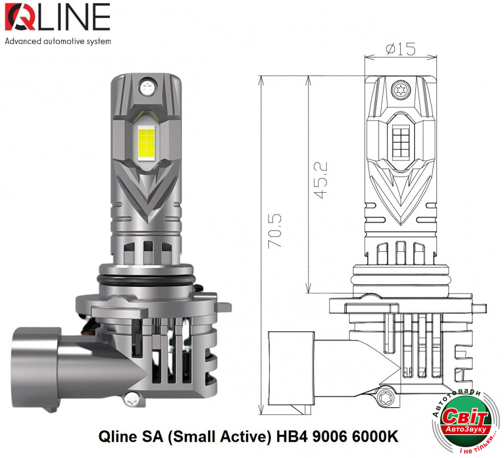 Світлодіодні лампи QLine SA (Small Active) HB4 9006 6000K (пара)Розмір максимально наближений до стандартних галогенових ламп! QLine SA це світлодіодні лампи в маленькому корпусі, але з величезними можливостями! Головна особливість даної лампи – це її розмір. По фізичним параметрам вона не відрізняється від звичайної галогенової лампи і без проблем встановлюється в будь-яку фару.
