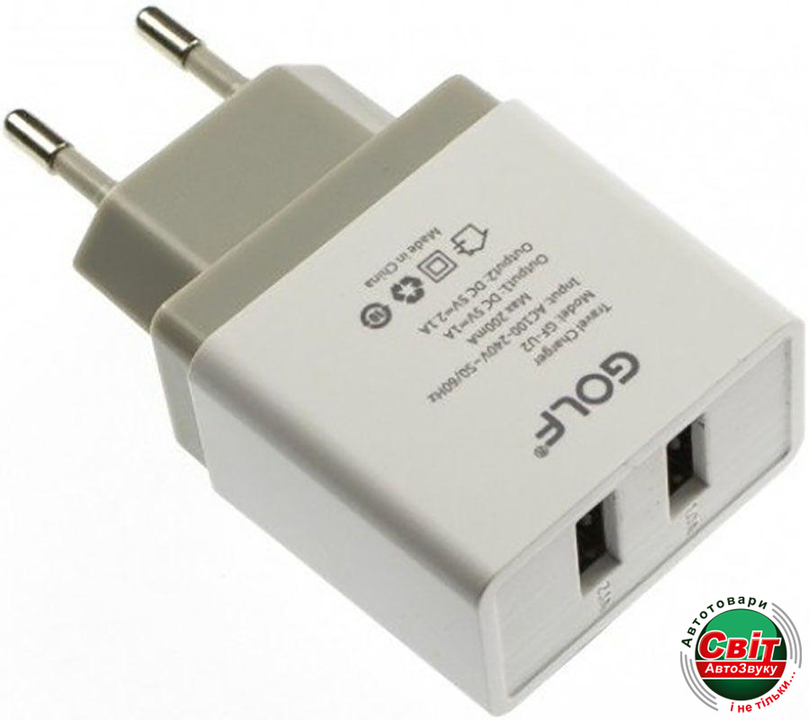 - ›МЗП GOLF GF-U2 Travel charger + Micro cable 2USB 2,1A White