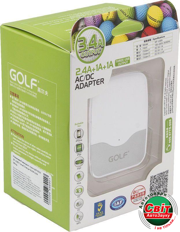 - ›МЗП GOLF GF-U305 Travel Charger 3USB 3,4A White