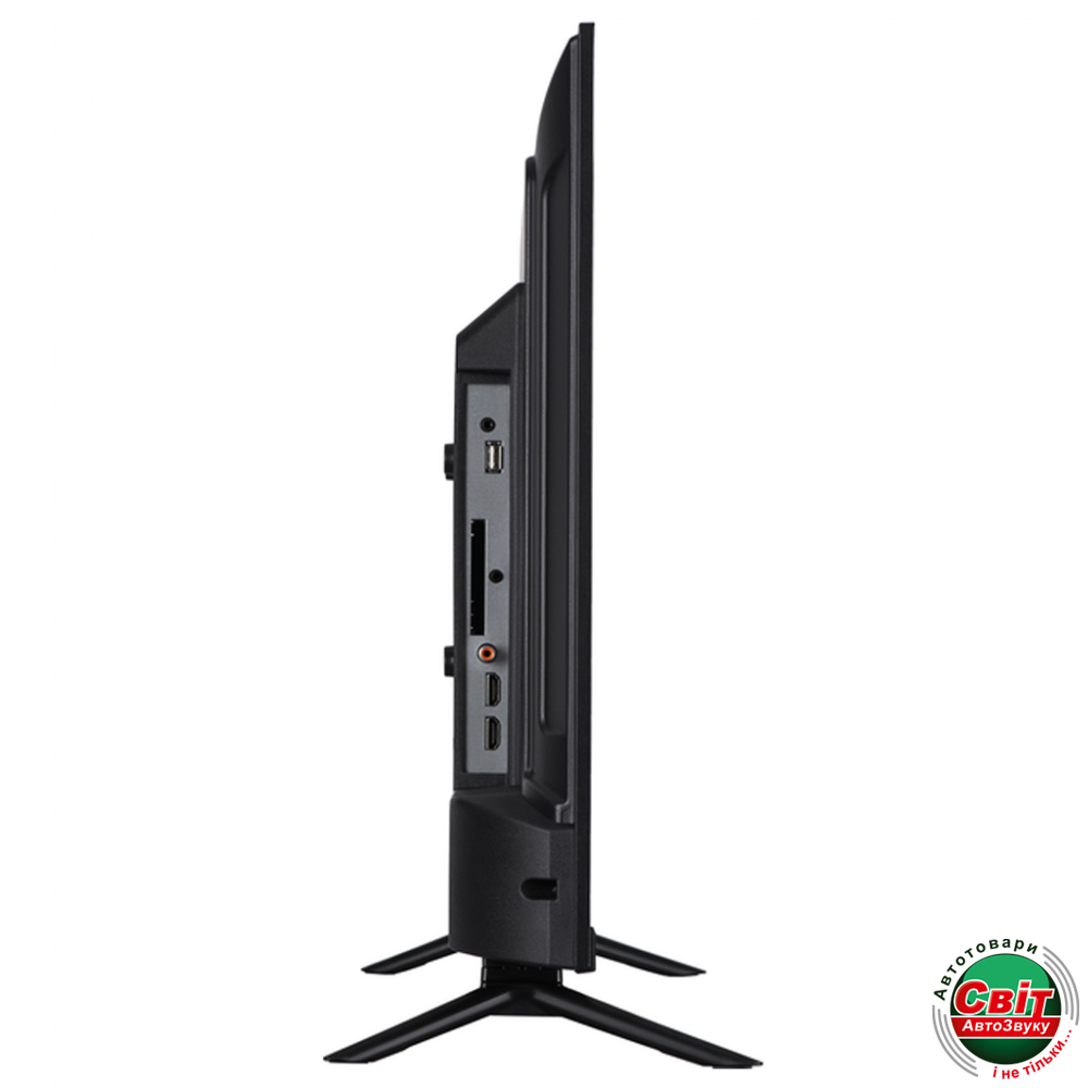 - Комплект поставки: Телевізор, Пульт дистанційного керування з батарейками, Настільна підставка, Кабель живлення, Документація